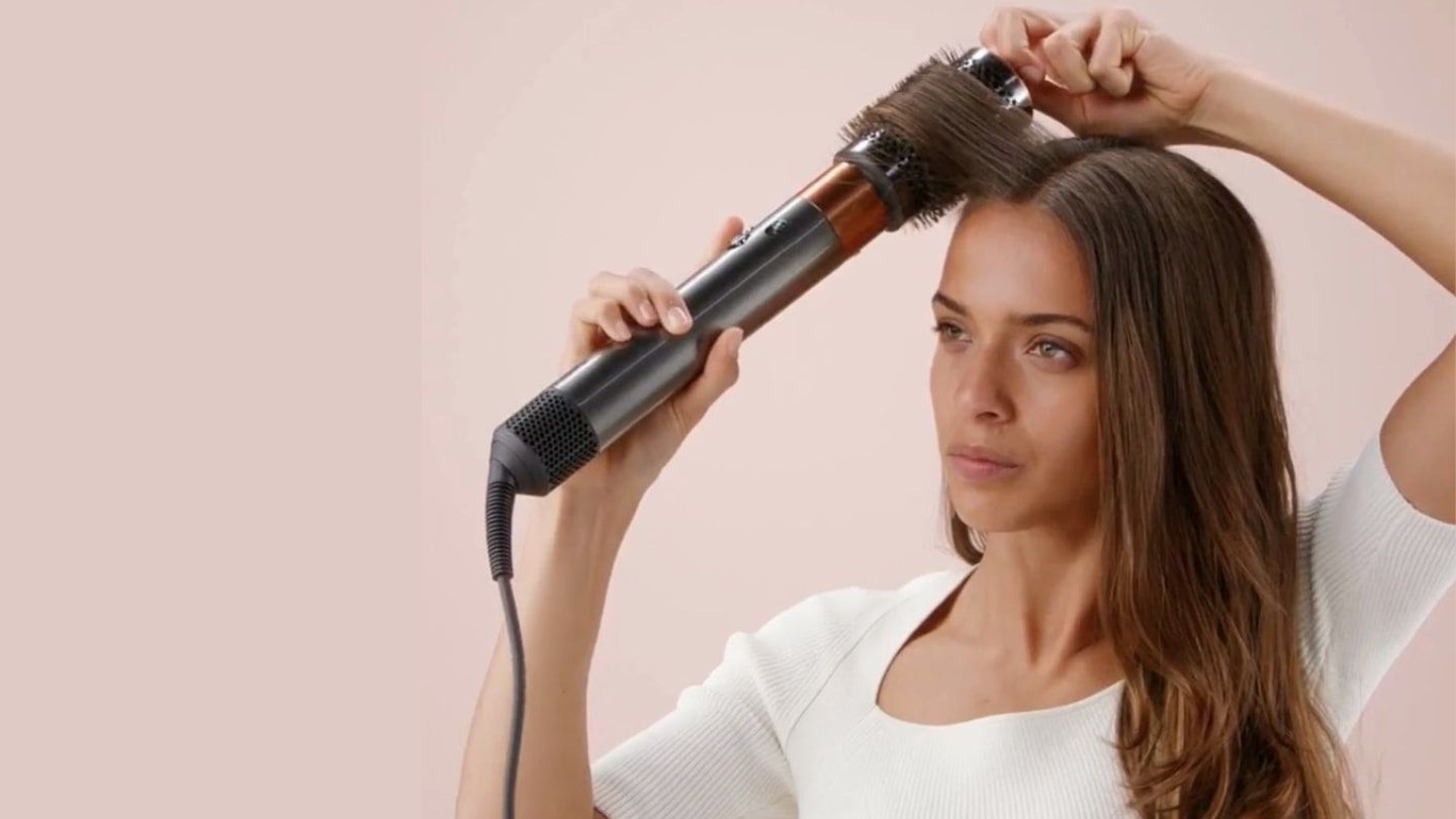 Die große runde Volumenbürste wurde für alle Haartypen entwickelt und getestet. Unsere Ingenieur*innen haben zahlreiche Prototypen mit unterschiedlichen Borstenlängen, -stärken und -dichten konstruiert und akribischen Tests unterzogen, um das optimale Design für alle Haartypen und -längen zu finden. Beginne mit frisch gewaschenem, entwirrtem Haar. Entwirre dein Haar mit der festen Smoothing Bürste oder dem Kammaufsatz mit breiten Zacken für den Airwrap™ Multi-Haarstyler und -trockner. Setze die große runde Volumenbürste auf und erzeuge Spannung, indem du die Borsten drehst und entlang des Haars nach unten gleitest. Wiederhole dies so lange, bis das Haar trocken ist.