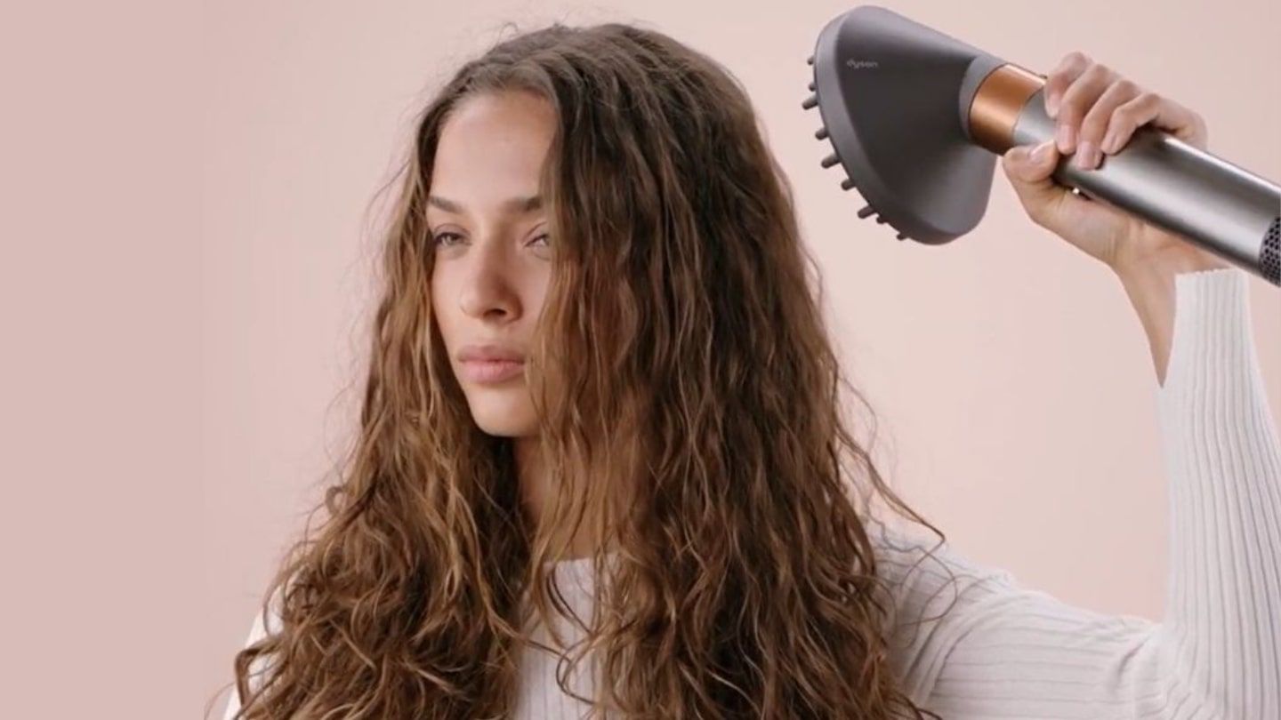 Der Diffusor besitzt ein neues Format und zwei Luftstrom-Modi, um natürlich lockigem und welligem Haar mehr Volumen, Struktur und Definition zu verleihen.